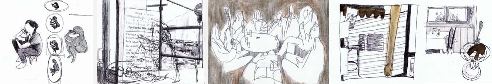 Croquis de suggestion l’essentiel plus narratif et valeurs d’ombres (ou pas ) - 2 minutes à 10 minutes