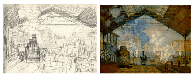 Claude Monet - Extrait des croquis, première approche pour une série de peintures sur le thème de la gare Saint Lazare.