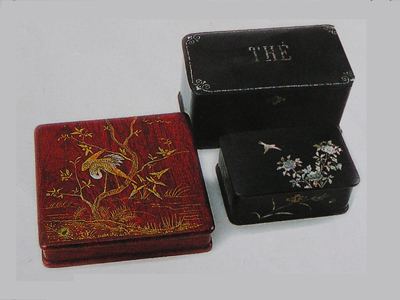 En Orient et en Occident. Au XIXe siècle, l’Europe et l’Amérique se lancent dans la fabrication de plateaux, de boîtes et autres objets usuels savamment décorés. En voici une liste, en donnant l'étendue impressionnante :