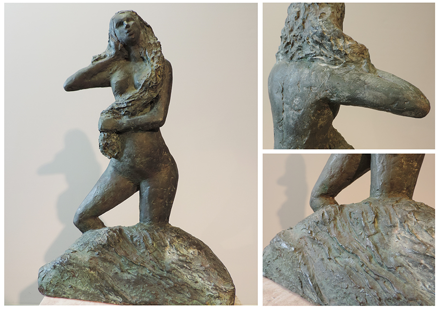 Le » tour de magie » de LA PATINE …. Cette patine sur une sculpture en papier mâché a l’aspect d’un bronze (hauteur 86cm). Elle est réalisée au tampon et à la brosse avec de la peinture acrylique, plus un petit secret en finition ultime ! Bravo à Éléna.